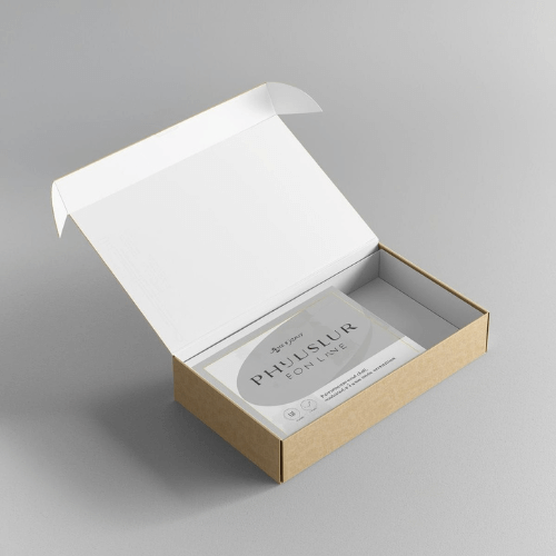 Cetak Box Packaging Selip / Straight Tuck End (STE) Box menampilkan desain tutup atas dan bawah yang masuk ke dalam dengan rapi, sehingga kemasan berdiri kokoh dan mudah dibuka tutup. Kemasan ini memaksimalkan tampilan branding, merapikan produk, dan membuat proses pengemasan lebih efisien untuk berbagai kebutuhan retail.