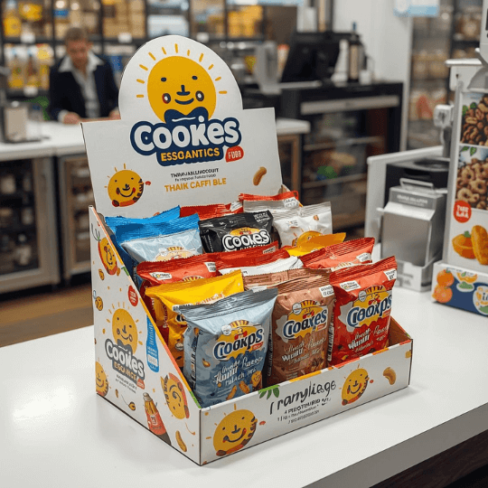 Jasa Cetak Display Box (Foldable Counter Display) berubah dari kemasan lipat menjadi display produk yang rapi dan siap menarik perhatian pada meja kasir. Desain ini memudahkan penataan, memperkuat tampilan branding, dan mendorong penjualan dengan presentasi produk yang lebih menonjol.